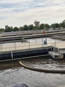 Anschließend ging es mit einem Trecker durch die Rieselfelder und die Kläranlage.